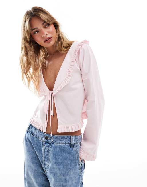 Blusa rosa con lazada delantera y solapas de ASOS DESIGN ASOS Very well made.