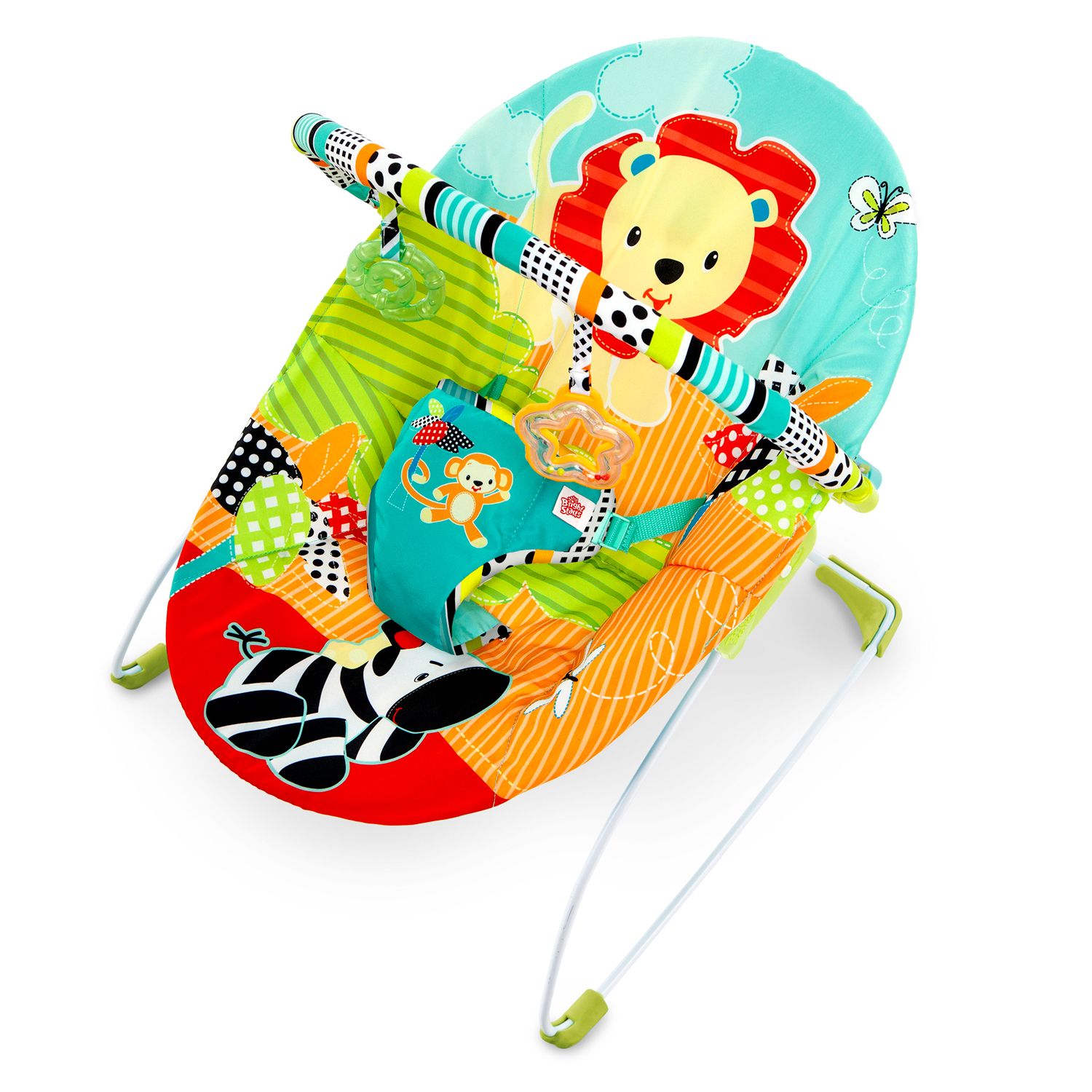 Bright Starts Baby Bouncer Soothing Vibrations Infant Seat Taggies Music Removable Toy Bar 0 6 Months Up to 20 lbs Happy Safari Very well made.