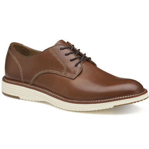 Johnston Murphy Men s Upton Leather Plain Toe Dress Casual Lace up Shoe Tan Full Grain Size 8 Very well made.