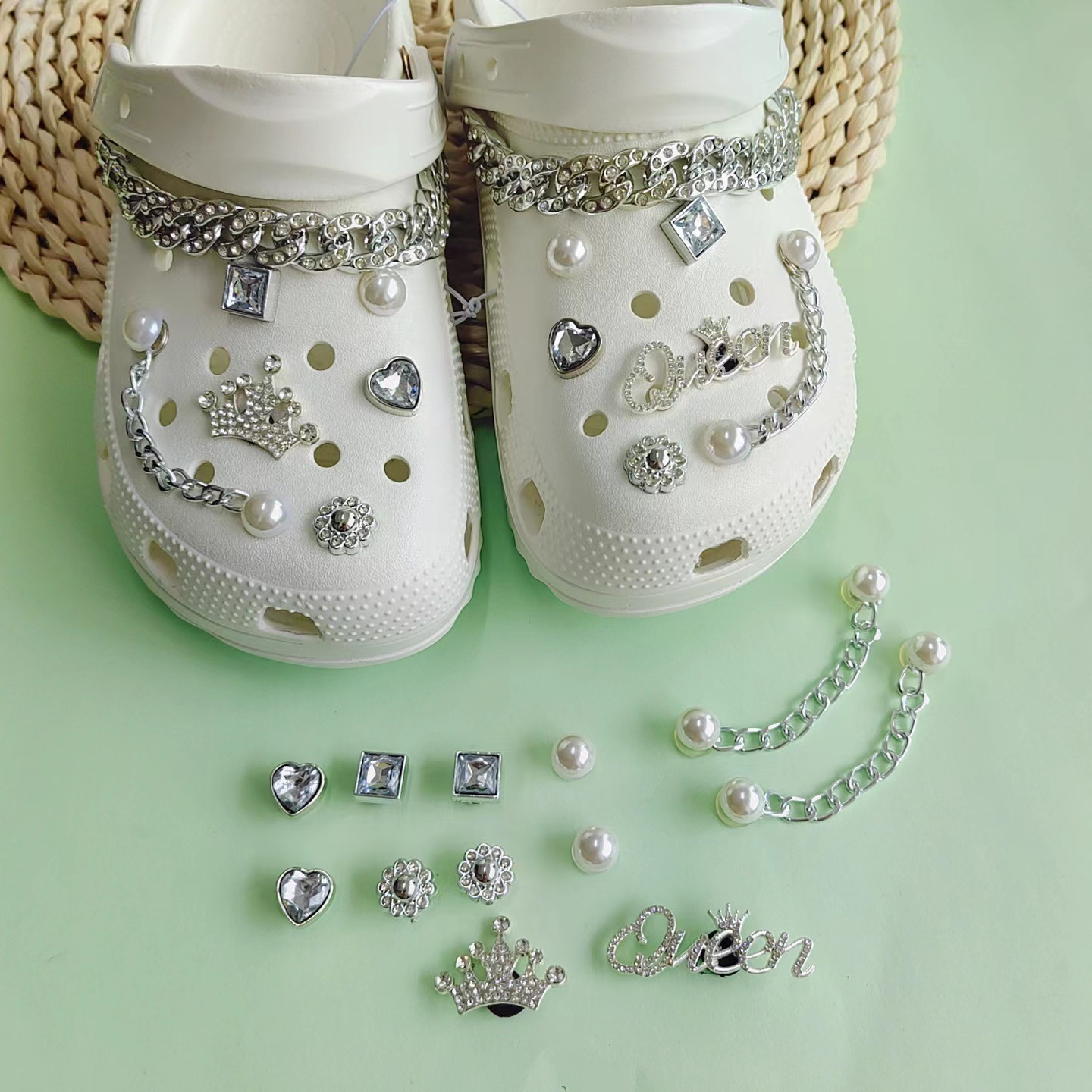 Wholesale designer Pearl flower jewelry clogs shoes charm golden rhinestone chain suit gift accessories for garden sandals clogs Very well made.