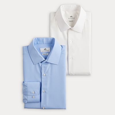 Men s 2 Pack Slim Fit Performance Dress Shirts Size Medium 32 33 White and Blue Very well made.