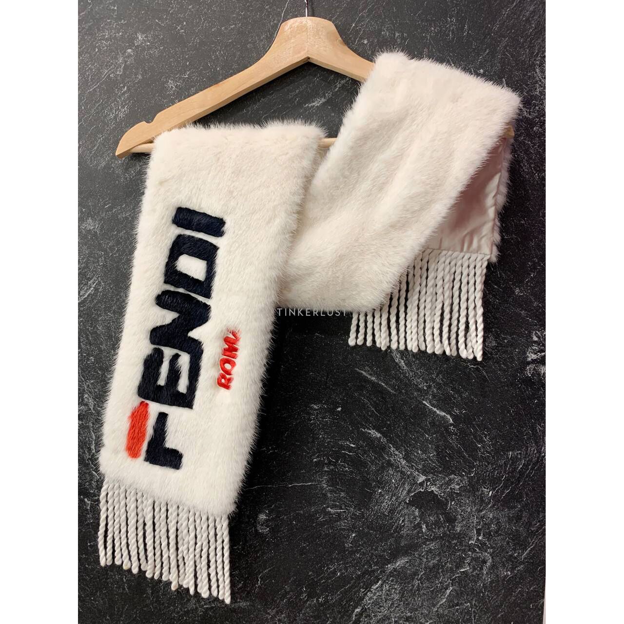 aksesoris scarf Fendi X Fila Logo Fringed Mink White Scarf Tinkerlust Very well made.