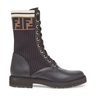 Fendi Logo Rococo Combat Ankle Boots Leather Boots Shoes Biker Boots Very well made.