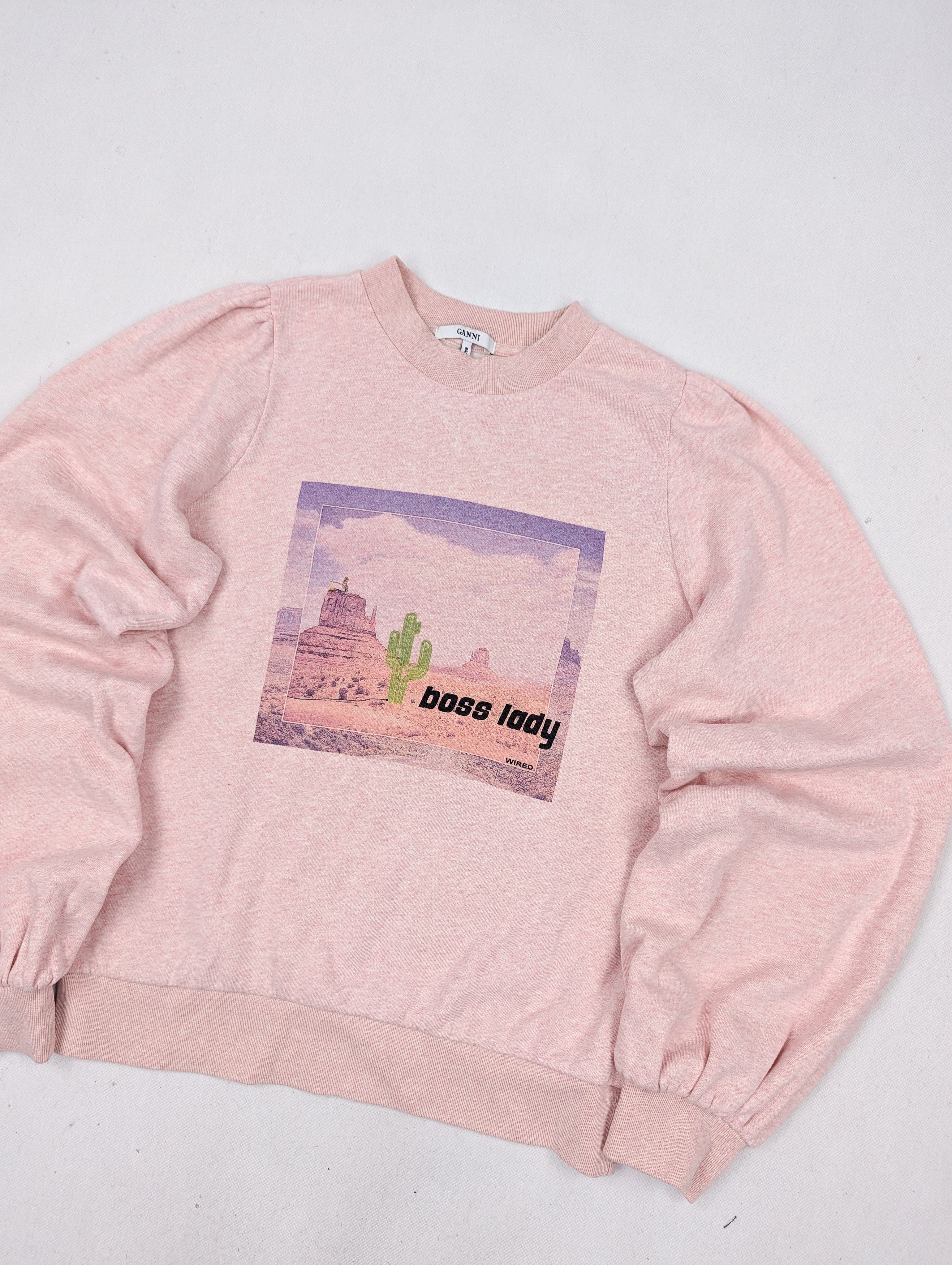 Ganni Ganni boss lady pink sweatshirt M Grailed Very well made.
