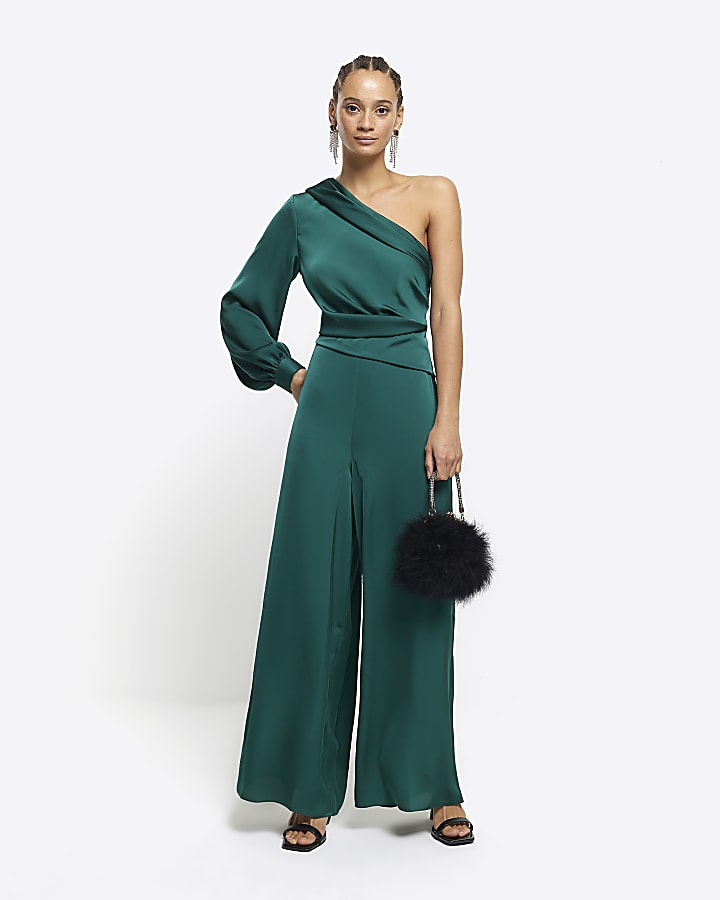 Green satin one shoulder wide leg jumpsuit River Island Very well made.