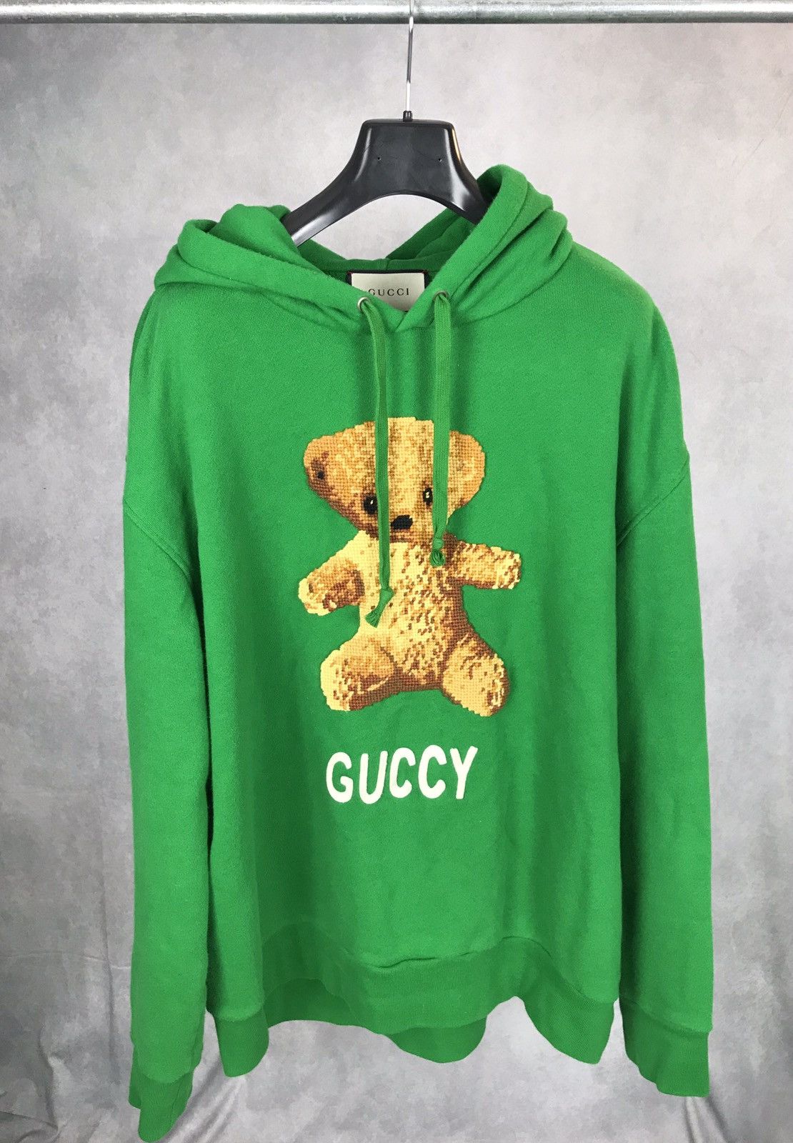 Gucci teddy bear shop hoodie green Very well made.
