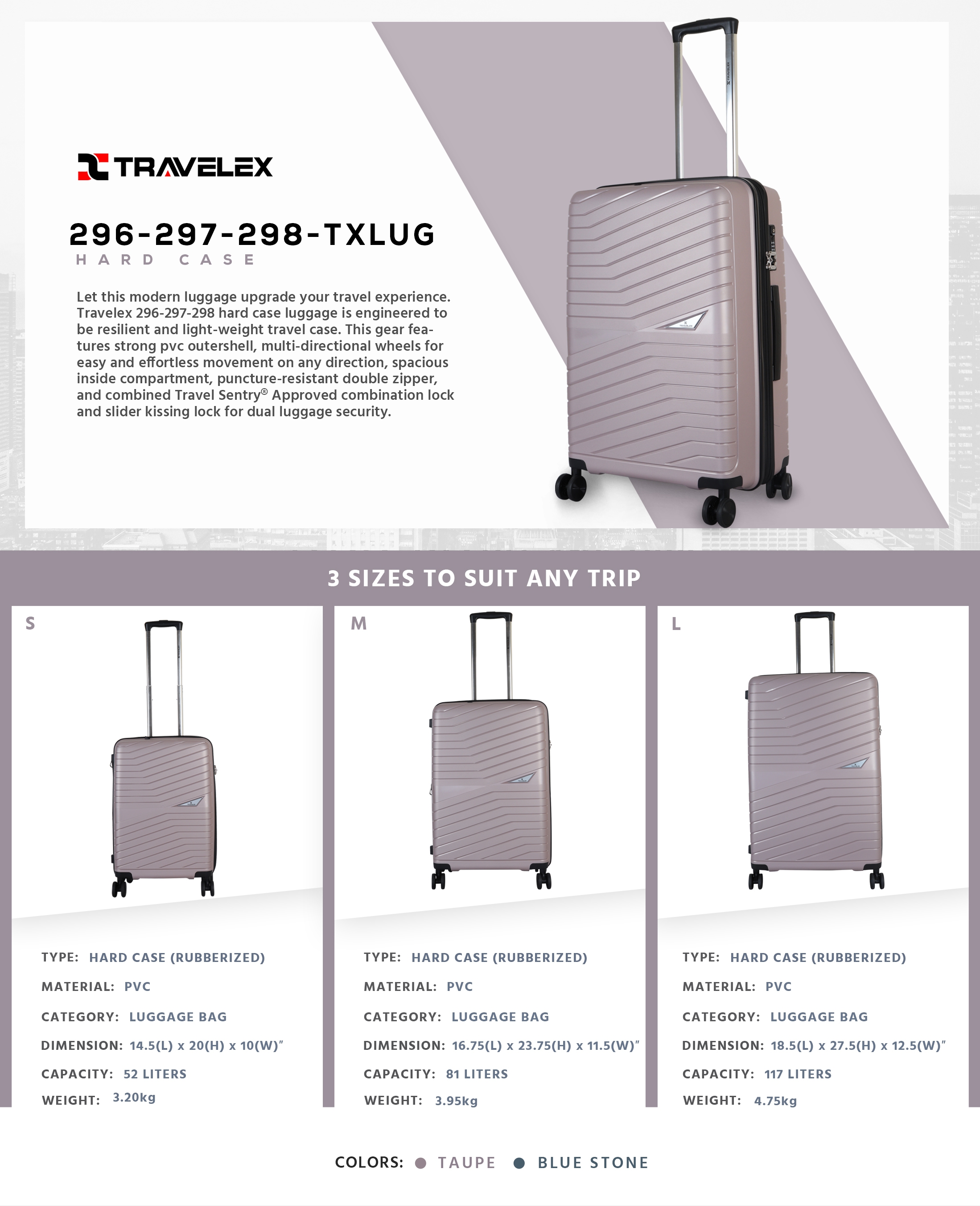 TRAVELEX 296 297 298 Hard Case Luggage Small to Large Shopee Philippines Very well made.