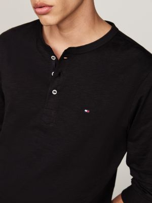 Textured Long Sleeve Henley T Shirt Black Tommy Hilfiger Very well made.