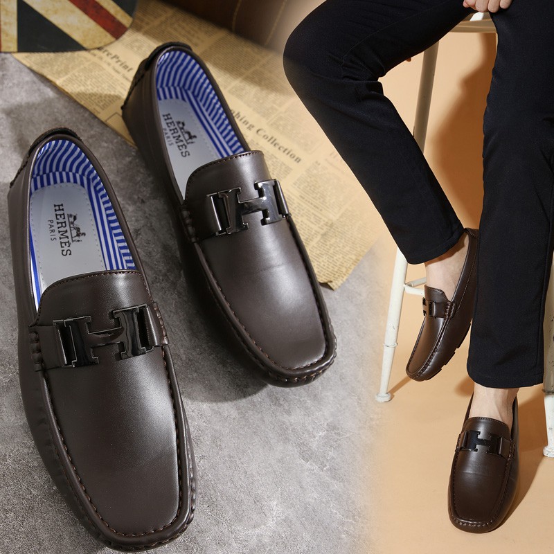 Men s Hermes Leather Shoes Slippers Casual Driving Shoes FP 501 Very well made.