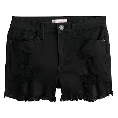 Juniors SO Mid Rise Destructed Black Shorts Very well made.