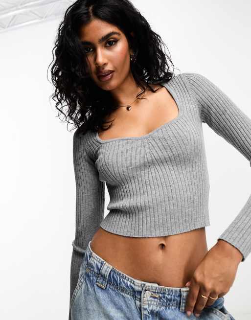Bershka Top in maglia grigio antracite con scollo a cuore Very well made.