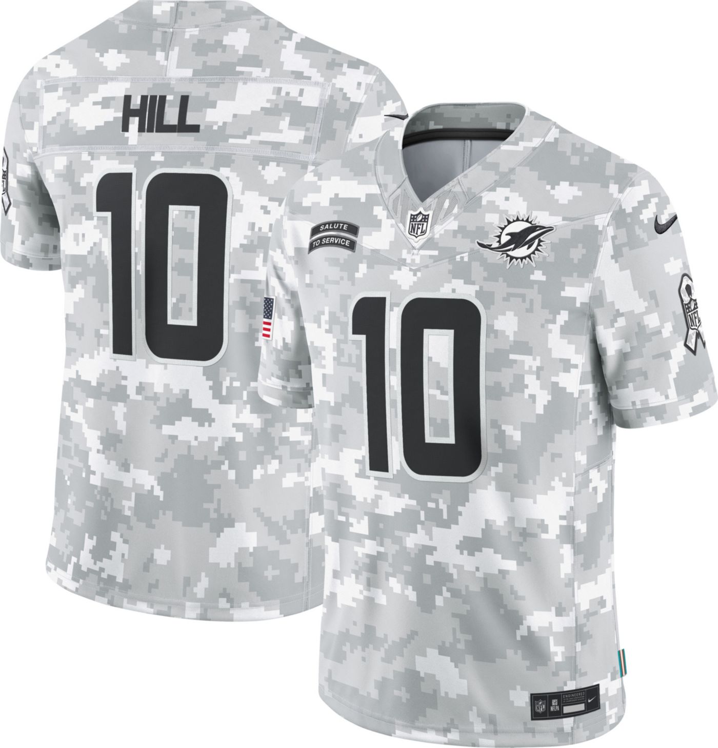 Nike Men s Miami Dolphins Tyreek Hill 10 Salute to Service 2024 Arctic Camo Limited Jersey Dick s Sporting Goods Very well made.