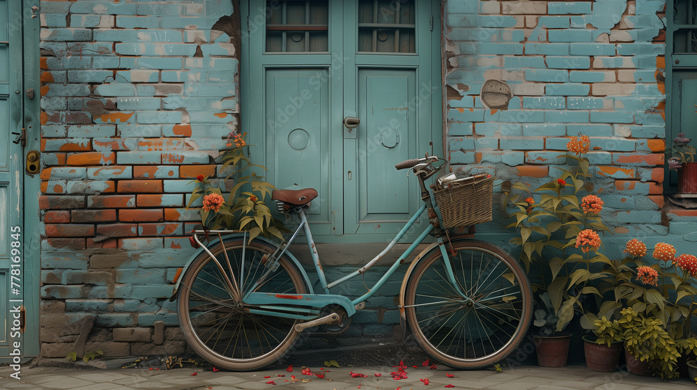Poster Print Nestled against aged bricks a vintage bicycle becomes a relic of forgotten jour 40x22.2 cm Very well made.