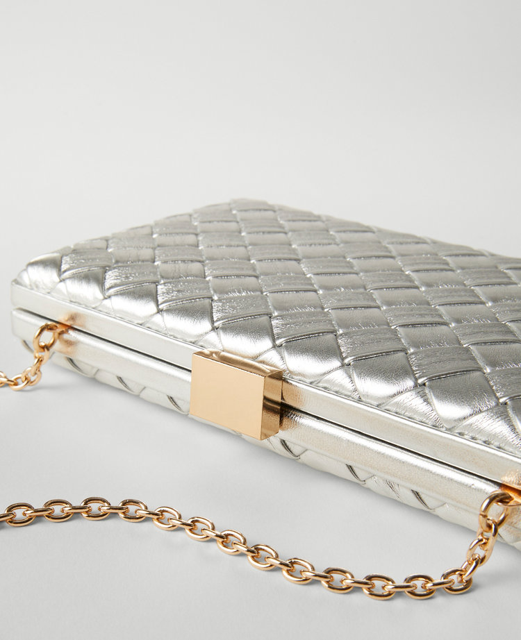 Woven Leather Metallic Hard Clutch Very well made.
