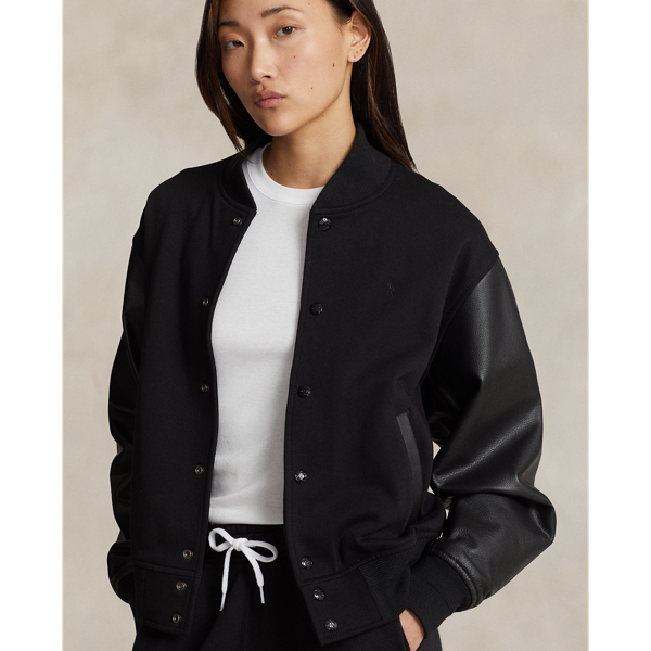 Logo Leather Trim Fleece Bomber Jacket for Women Ralph Lauren BH Very well made.
