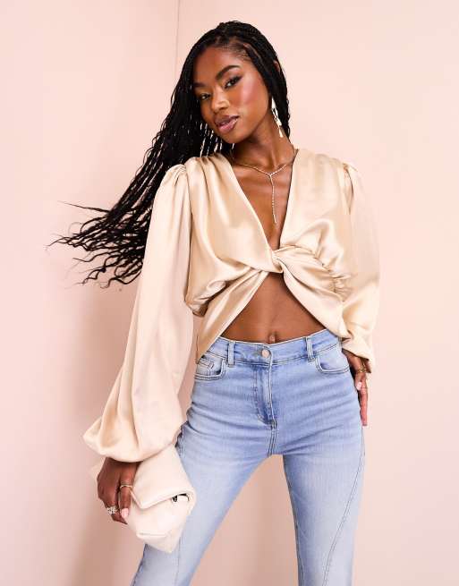 ASOS LUXE satin drape twist front top in oyster Very well made.