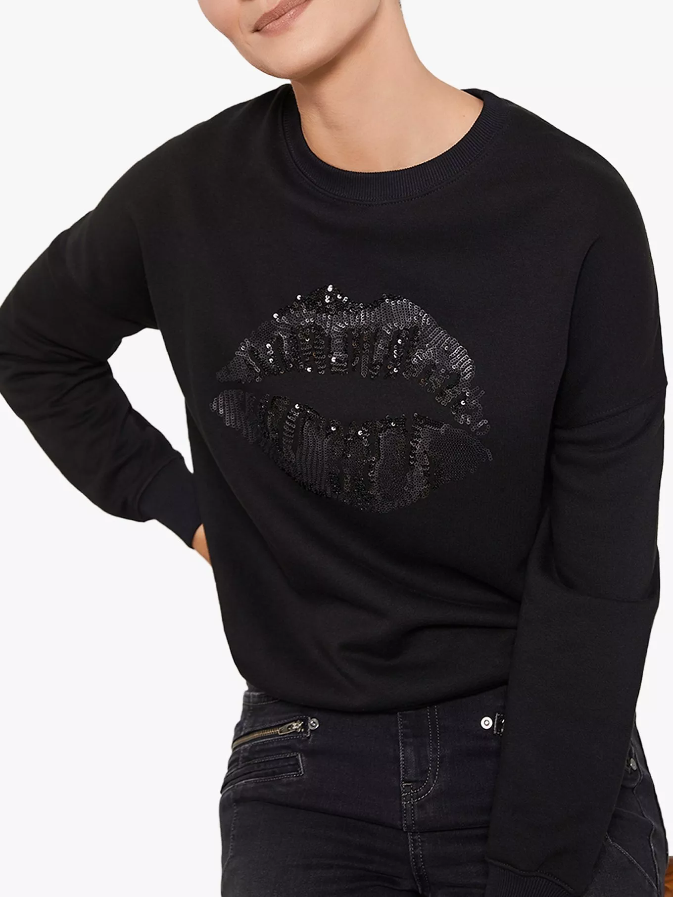 Mint Velvet Sequin Lips Sweatshirt Black Very well made.