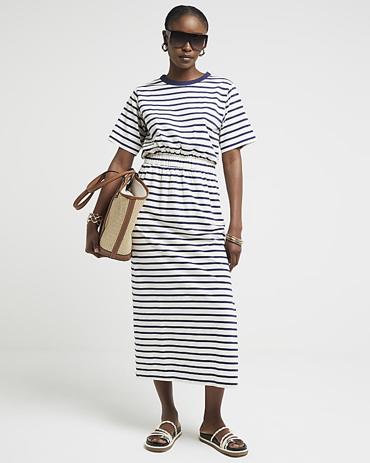 White stripe shirred waist t shirt midi dress River Island Very well made.