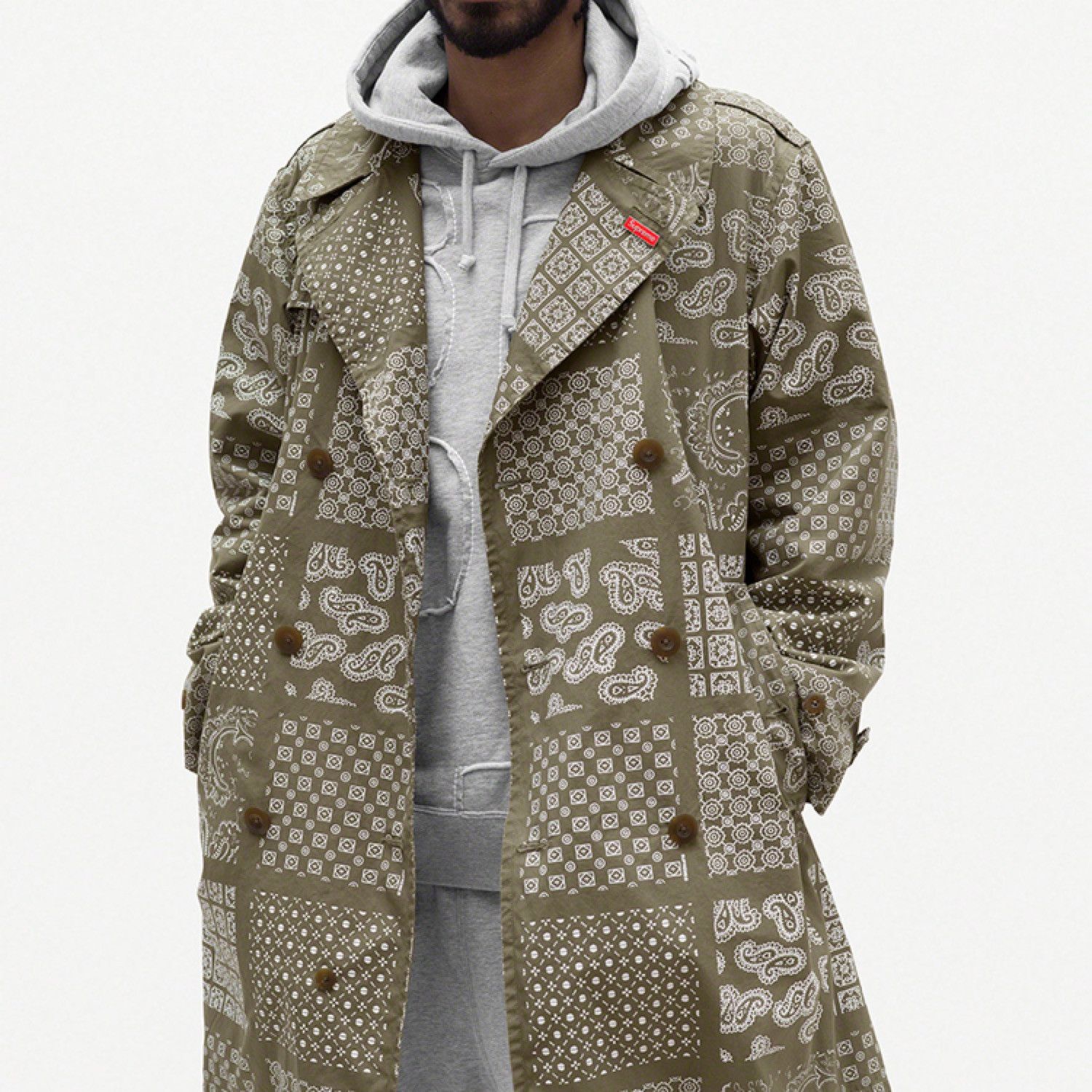 Supreme supreme olive grid paisley trench coat Grailed Very well made.