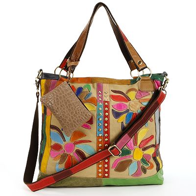 AmeriLeather Rosalie Leather Canvas Floral Patched Convertible Tote Very well made.