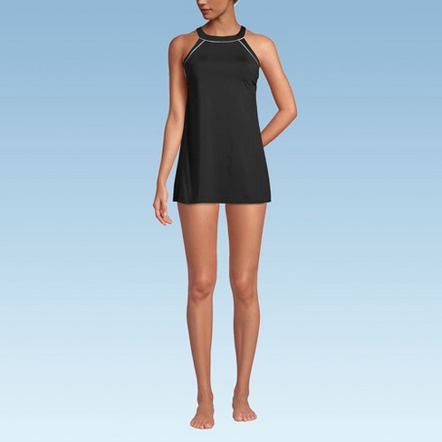 Lands End Women s Long High Neck Swim Dress Swimsuit 8 Black white Target Very well made.