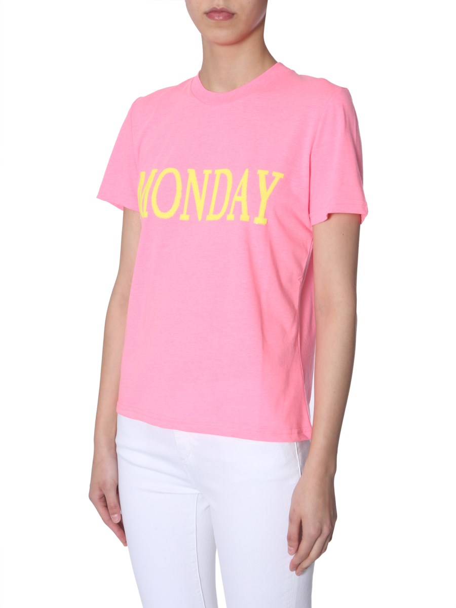 ALBERTA FERRETTI T SHIRT SLIM FIT IN COTONE CON RICAMO MONDAY IN PAILLETTES Eleonora Bonucci Very well made.