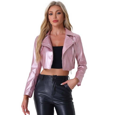 Inspire Chic Women s Faux Leather Long Sleeve Zipper Up Moto Cropped Jacket Pink Medium Target Very well made.