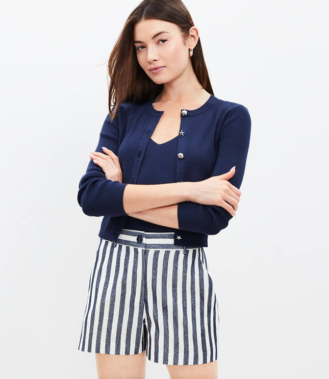 Ann Taylor Loft The Riviera Short Button Detail Blue Stripe Shorts Women s 2 Very well made.