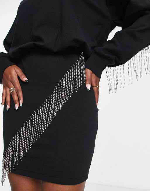 ASOS DESIGN Bodycon Mini Sweatkleid in Schwarz mit Strassfransen ASOS Very well made.