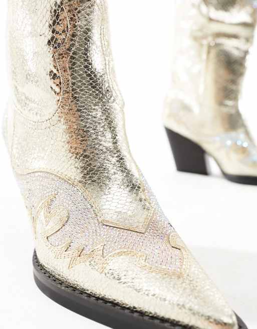 Simmi London Dakoa Cowboy Stiefel in Metallic Gold Very well made.