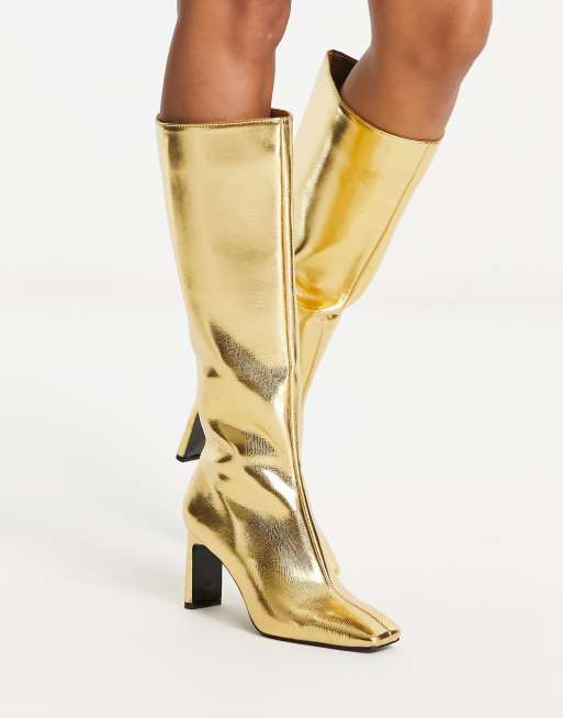 Stradivarius Kniehohe Stiefel in Goldoptik Very well made.