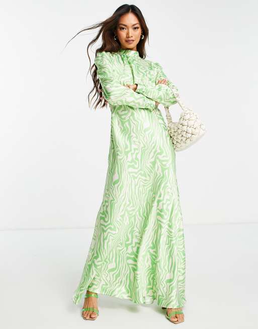 ASOS DESIGN high neck maxi satin tea dress in green swirl print Very well made.