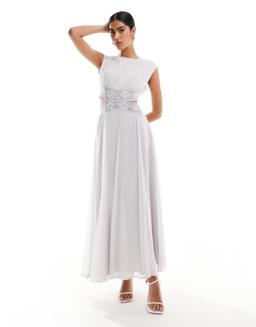 ASOS DESIGN high neck sleeveless cut out lace detail midi dress in grey Very well made.