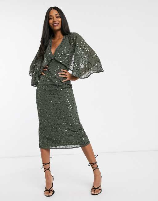 ASOS DESIGN Midikleid mit Cape und Kimono Armeln sowie mit verstreuten Pailletten bestickt ASOS Very well made.