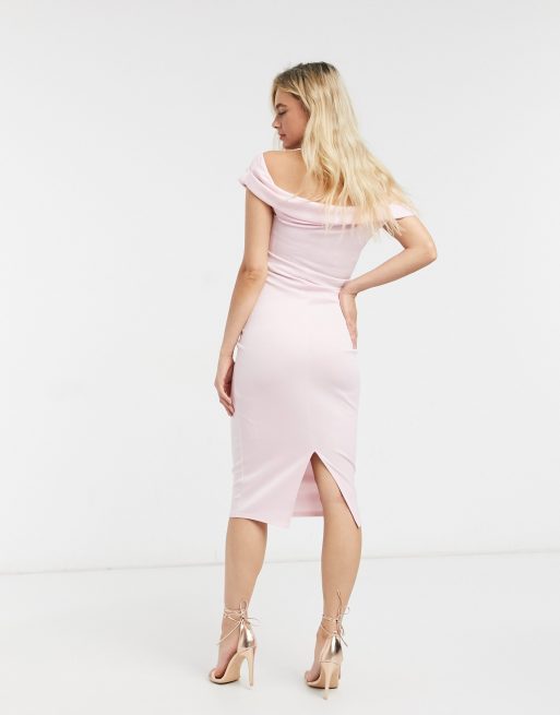 ASOS Design Maternity Baby Shower Schulterfreies Midikleid aus Scuba in Sanftrosa Very well made.