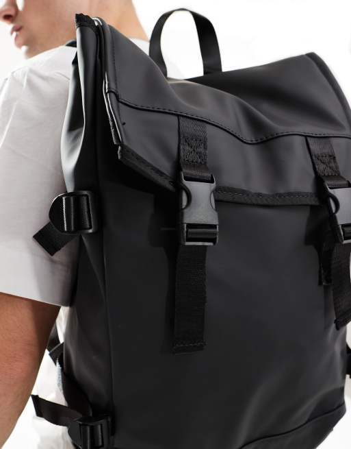 ASOS DESIGN Gummierter Rucksack in Schwarz mit Doppelriemen Very well made.