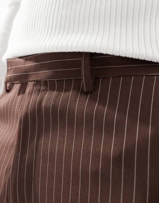 ASOS DESIGN smart tapered pinstripe trousers in brown Very well made.