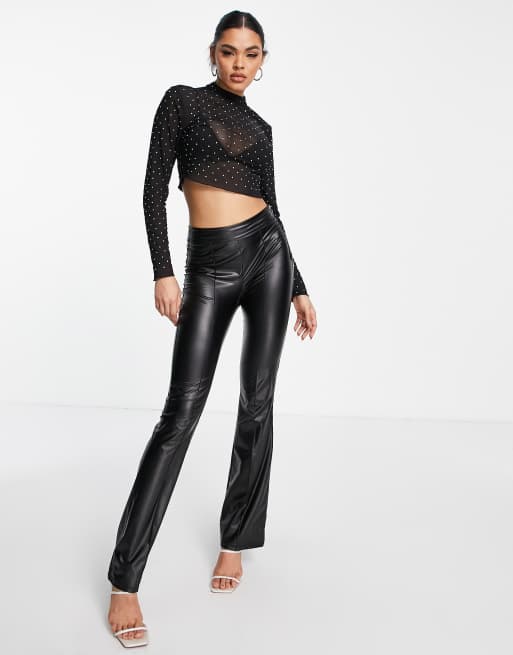 ASOS DESIGN crystal high neck mesh crop top in black Very well made.