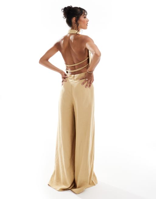 ASOS Strappy Cut out Back Detail Wide Leg Jumpsuit in Metallic Lyst UK Very well made.