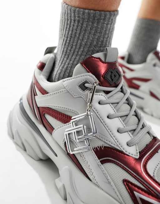 ASOS DESIGN Sneaker in Grau mit burgunderroten Metallic Einsatzen und dicker Sohle ASOS Very well made.