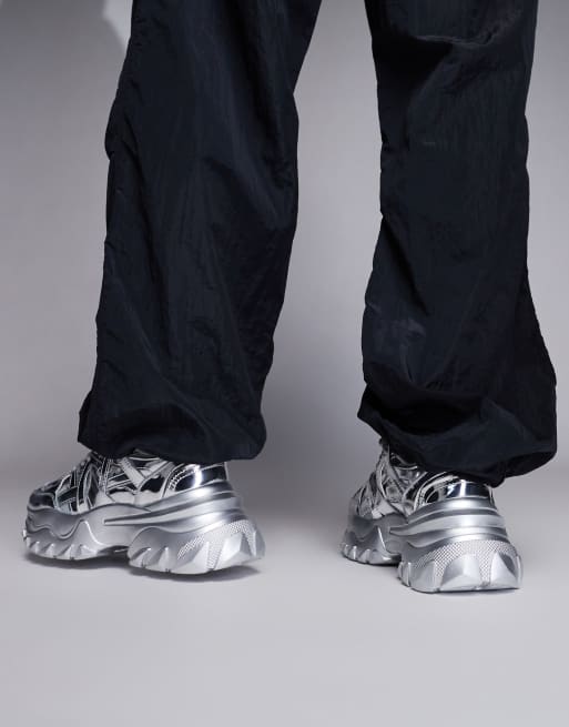 ASOS DESIGN Sneaker in Metallic Silber mit dicker Sohle Very well made.