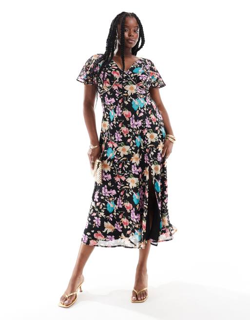 ASOS DESIGN Curve Midi Freizeitkleid mit Blumenmuster in dunklen Farben und Nahtdetails ASOS Very well made.