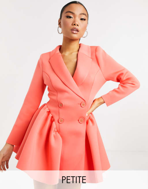 ASOS DESIGN Petite exclusive mini tux dress with ruched side pep in bright coral Very well made.
