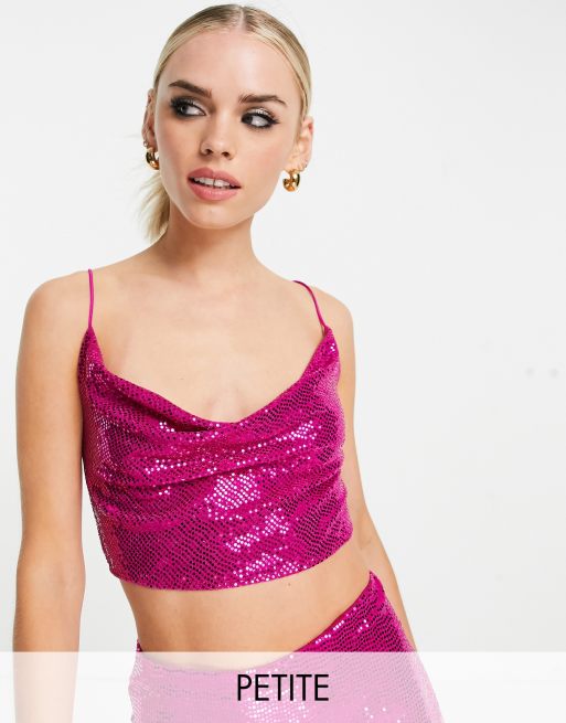 Flounce London Petite sequin crop top with cowl neck in pink part of a set Very well made.