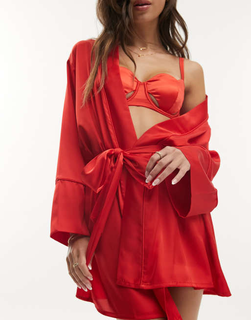 ASOS DESIGN Kurzer Morgenmantel aus Satin in Rot ASOS Very well made.