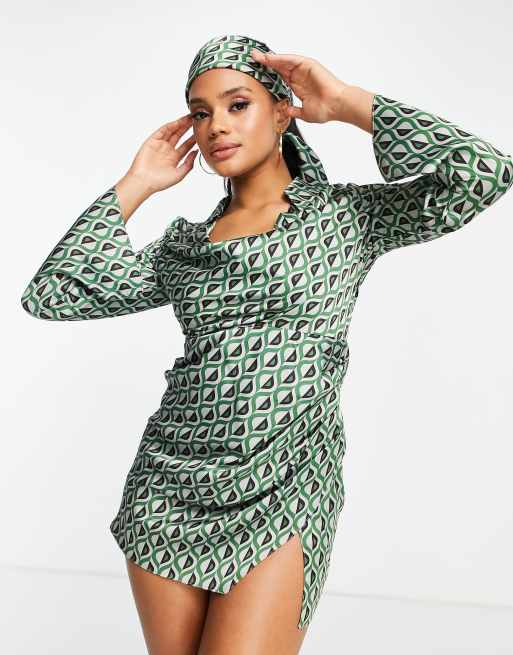 ASOS DESIGN Minikleid mit Kragendetail am Wasserfallausschnitt geometrischem Muster und passendem Kopftuch ASOS Very well made.