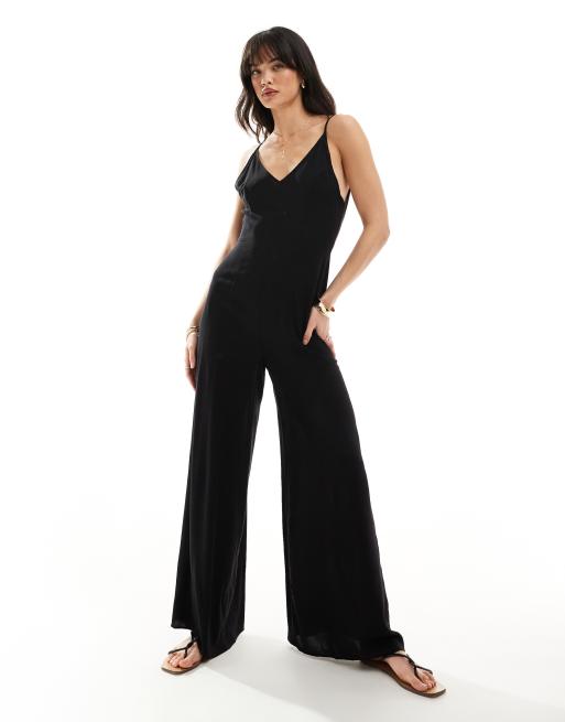 ASOS DESIGN Schwarzer Jumpsuit mit weitem Bein und geraffter Seite Very well made.