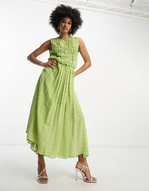 ASOS DESIGN Tall Strukturiertes Midikleid in Pistaziengrun mit Raffung und nach hinten abfallendem Saum ASOS Very well made.