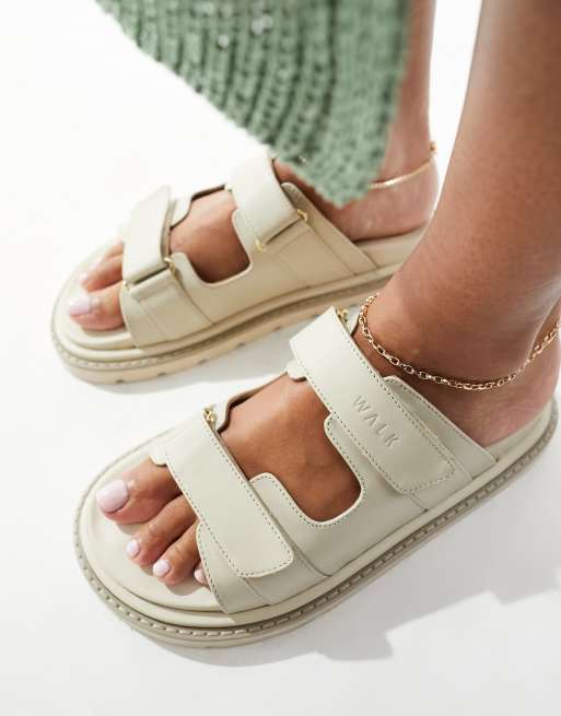 Walk London Budapest Sandale mit zwei Riemen aus Leder in gebrochenem WeiB Very well made.