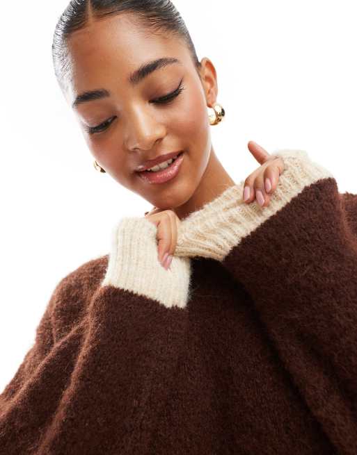 ASOS DESIGN wool blend fluffy wide sleeve knitted jumper in black and white stripe Very well made.